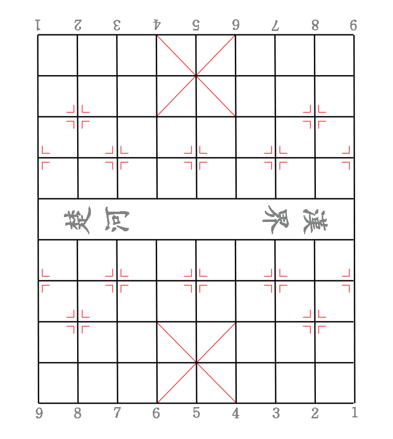 棋盘上 3×3 的方格区域称为“九宫”,是双方将(帅)唯一可以停留的范围。将(帅)以及仕(士)必须始终待在九宫之内,不能离开。